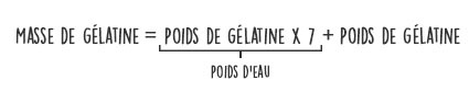 Vous obtiendrez ce quon appelle la masse gélatine une sorte de bloc de gélatine. Pour une feuille de gélatine de 2 gr il faut 7 gr deau au gr soit 14g ce qui donne 2 gr 14 gr 16 gr de masse gélatine. 10 g de poudre 5 feuilles.