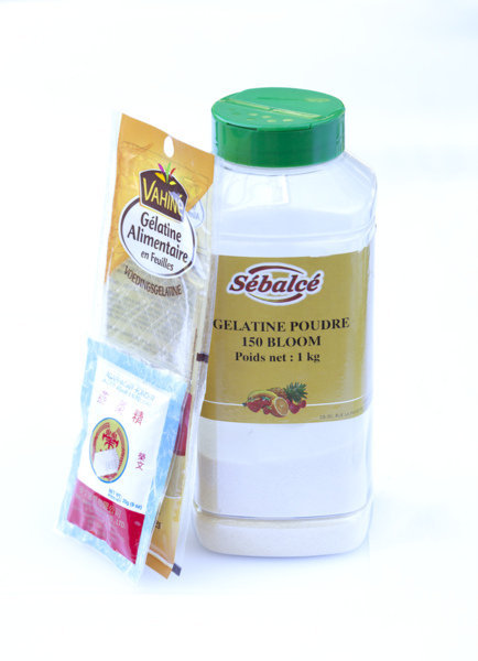 Elle existe sous 2 formes la gélatine en feuille est la plus employée. 2 feuilles 1 cc de poudre. On trouve aussi de la gélatine en feuilles dans certaines épiceries fines.